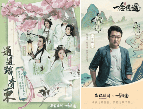 在游戲之外,,《一念逍遙》一直致力于打造國風修仙原創IP,,以音樂、、、漫畫,,,,小說等衍生內容去延展豐富游戲內容。。。。上線以來,,,,整整做了十首歌,,小說應該也是喜馬拉雅平臺今年游戲品類小說收聽量Top1的作品;而在營銷的內容傳播上,,,《一念逍遙》也一直秉承比較國風的基調,,,傳遞詩詞、、、、文化內涵,,,如如清明節定制漢服合作,,,,傳遞中國傳統的清明踏青、、、、清明詩會文化。。。